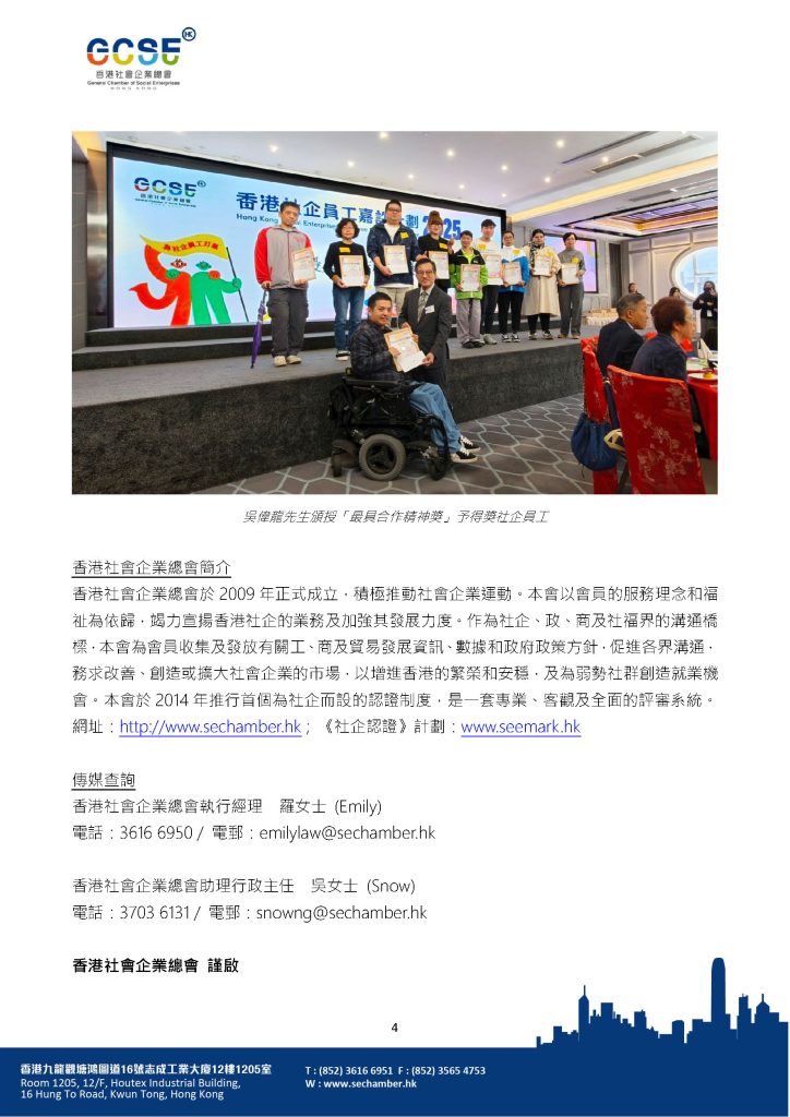 [新聞稿] 香港社企員工嘉許計劃2025