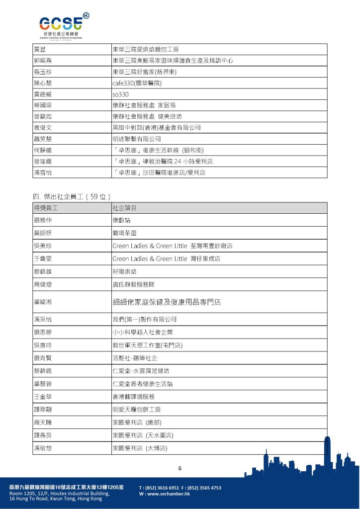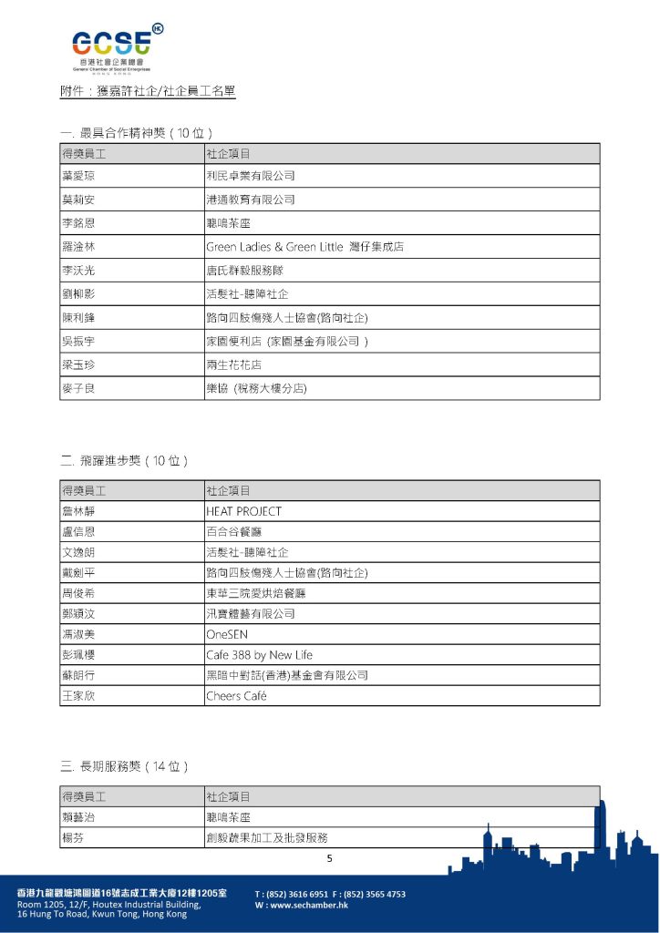 附件:獲嘉許社企/社企員工名單