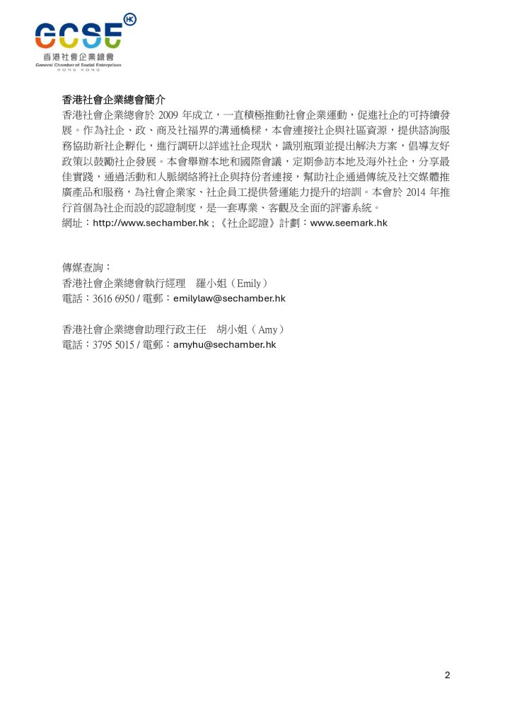 網址:http://www.sechamber.hk ; 《社企認證》計劃:www.seemark.hk