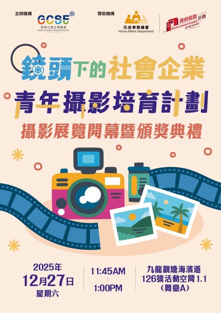 15位青年学员深入本地多间社会企业进行实地拍摄,透过镜头捕捉社企背后的理念与动人故事。这些精采作品将于摄影展览开幕暨颁奖典礼当日同时公开展出,诚邀您莅临现场,一同欣赏青年学员的创作成果,感受他们镜头下的社企精神!